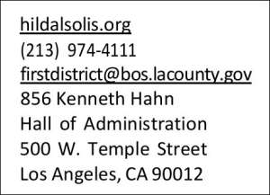 Hilda Solis, Supervisor, 1st District, Los Angeles County. Includes Hacienda Hts, Rowland Hts, Diamond Bar and Walnut. See full list in Photos.