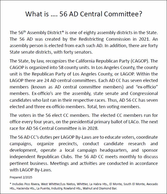 Thanks for the great leadership!Worst of the worstCandidate Training 11/15 to 11/17/2025 San DiegoCandidate TrainingGala - DinnerLocal to County to State GOP relationship.Provides explaination of 56 ADCC relative to State GOP.Where it happens!Still very true today.